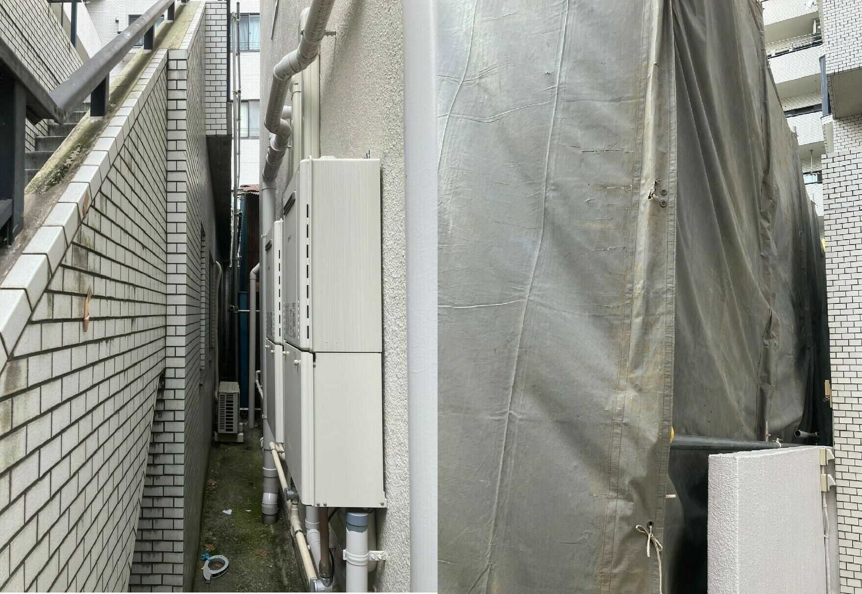 隣地との境界が狭いですが、防音養生シートを建て対応しております。